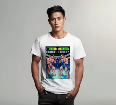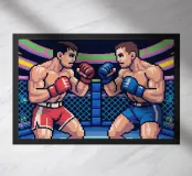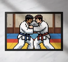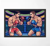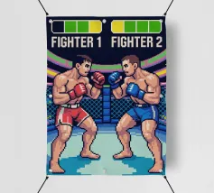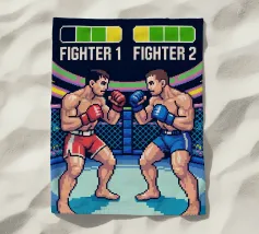 Step into the cage with this explosive pixel art MMA design! Two fighters face off in an intense duel, capturing all the tension and energy of mixed martial arts, retro video game style. Perfect for fans of MMA, martial arts and gaming culture. The vintage arcade style gives a nostalgic feel while evoking the power, strategy and adrenaline of a real fight in a Mixed Martial Arts cage. It's a powerful visual for true fans of pixelated combat.