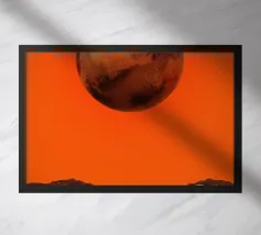 This digital illustration captures the daring descent of two brave skydivers over an alien red desert landscape. The terrain below is a vast, barren expanse of crimson sand dunes.
