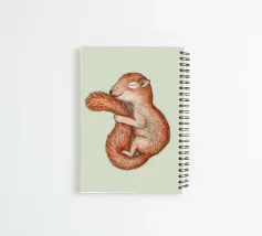 A cute red squirrel in hibernation, cuddling its own tail. Pencil drawing.