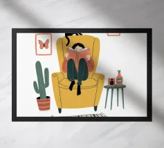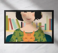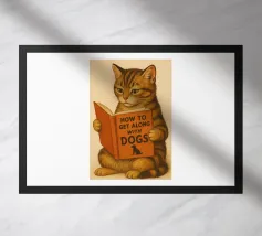 A person reading a book with the title "How to be a cat", an art for all cat lovers.