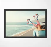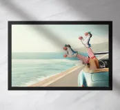 Experience the ultimate freedom and adventure with our vintage artwork. Feel the sun on your skin as you drive along the scenic coastline in a classic convertible. Imagine the wind in your hair as a carefree skater glides by the ocean. This masterpiece captures the nostalgia of a retro road trip and brings you closer to the beauty of an unlimited life. Perfect for any art and adventure enthusiast."