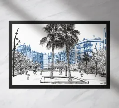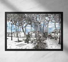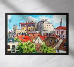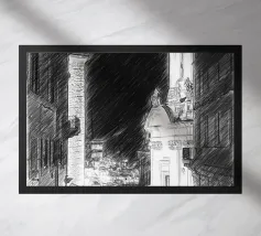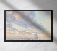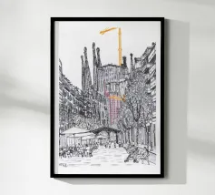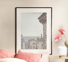 The clouds spreading over the city of Barcelona are dynamic. Looking out from the rooftop of my apartment, I can see the sparkling sea beyond the city to the right. A different world unfolds before me that cannot be seen from the street. This is a drawing I did live.