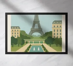 A timeless travel poster inspired by the charm of paris, capturing iconic scenery in a vintage retro style. With a harmonious blend of color and composition, this artwork brings nostalgic vibes and wanderlust to your walls — perfect for travelers, design lovers, or anyone who dreams of Paris.