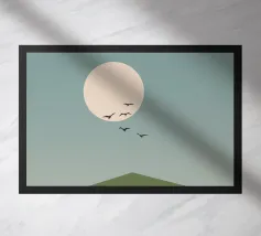Embrace the profound beauty of serene solitude. This minimalist landscape captures the quiet moment the sun kisses the horizon, casting a warm glow over a tranquil sea. Using simple shapes and a soothing, earthy palette of terracotta and muted blues, this piece is an open invitation to pause, breathe, and find a moment of stillness in a busy world. It’s the perfect artwork to create a calm, meditative focal point in your living room, bedroom, or any space where you seek peace and a gentle escape.
